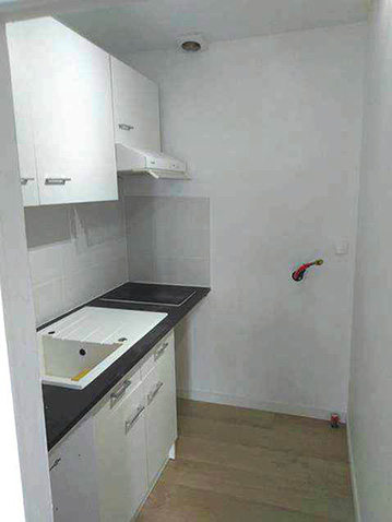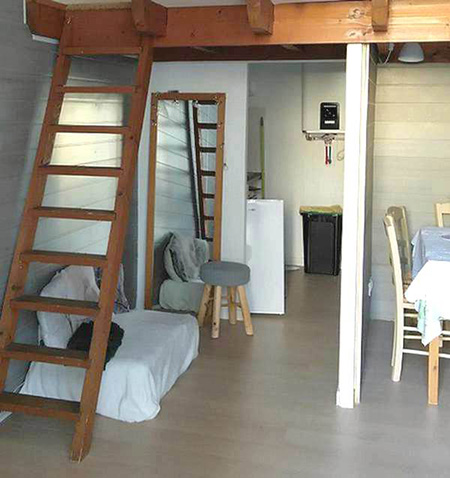 Mezzanine 10 m2 pour un coin couchage - Kitchenette, placars, plaque vitrocéramique, réfrigérateur, lave lige, VMC