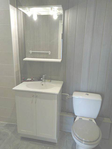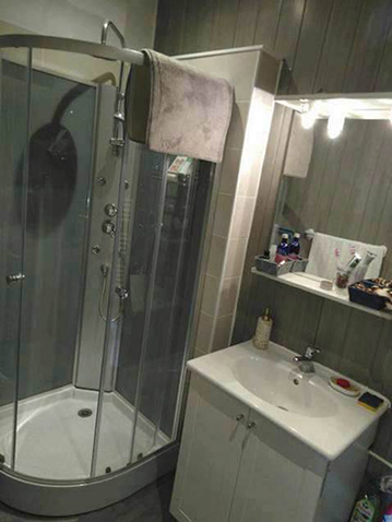 Salle d'eau indépendante, lavabo, WC, douche avec pommeau et jets, VMC