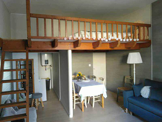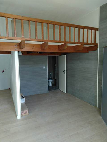 Mezzanine 10 m2 (hauteur 1.10 m pour coin couchage).